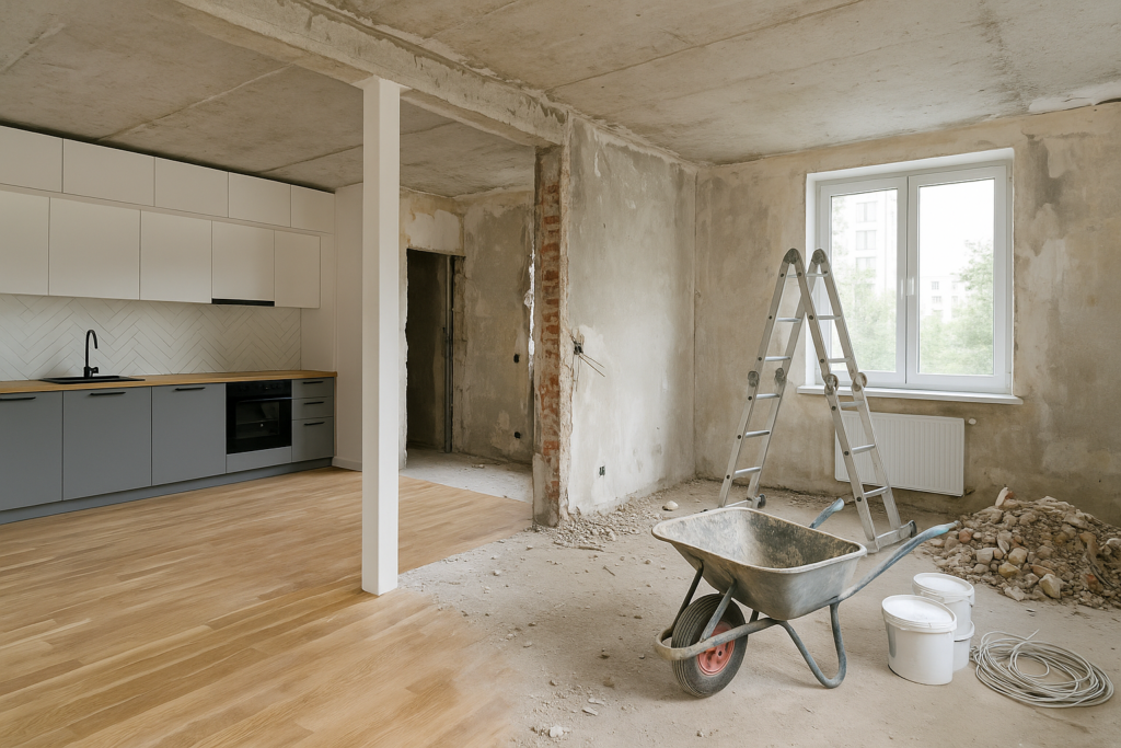 Peinture, sols, salles de bain, cuisines, cloisons et finitions sur mesure.